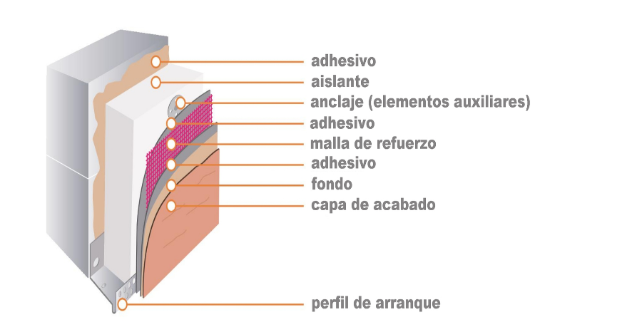 Los SATE son sistemas de aislamiento térmico por el exterior. Consisten en un panel aislante prefabricado adherido al muro, cuya fijación habitual es con adhesivo y fijación mecánica.